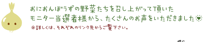 【おにおんぼうず】の野菜たちは、北海道の豊かな大地と美味しい空気の中で育った野菜です。そんな中でも規格から外れてしまった、見た目は個性的な野菜たちは、美味しさ・栄養的に全く劣ることはありません。北海道のすばらしい大地の恵みを感じつつ、野菜本来の味を生かしたレシピをお届けします。普段何気なく食べていた野菜達の性格を知って食べてもらうことによって、今までとは違う感動を発見していただき、いつもよりちょっぴり素敵な食卓になったなら幸いです。